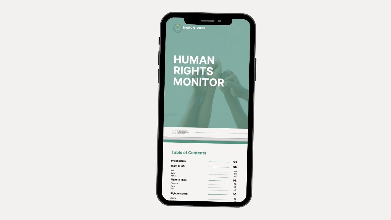 The Amman Center for Human Rights Studies has released the March 2025 edition of the Human Rights Monitor, documenting key violations and developments across the Arab region. The report focuses on critical themes such as the right to life, freedom of expression, participation, and social protection.