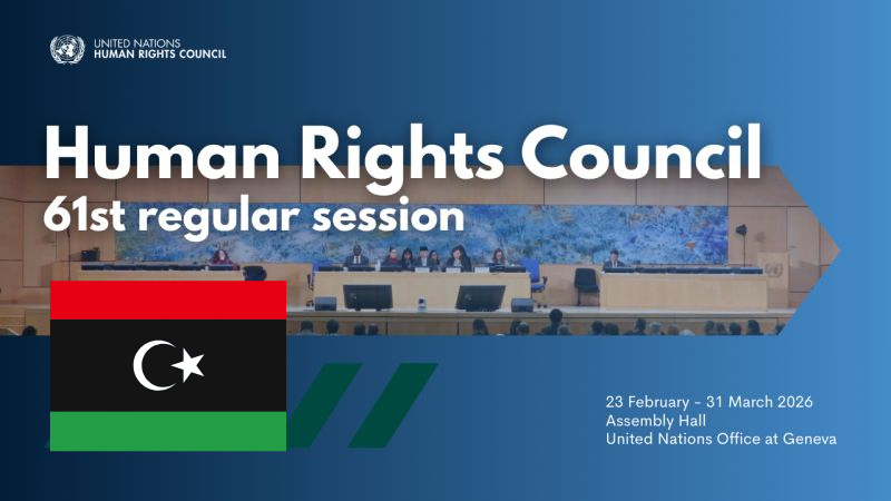 The Human Rights Council convened for its 61st session in Geneva between 23 February and 31 March 2026. Agenda item 6 will deal with the Report of the Working Group of the Universal Periodic Review, whose report was on Libya. The review of Libya was held on 11 November 2025, with the report being adopted on 14 November 2025.